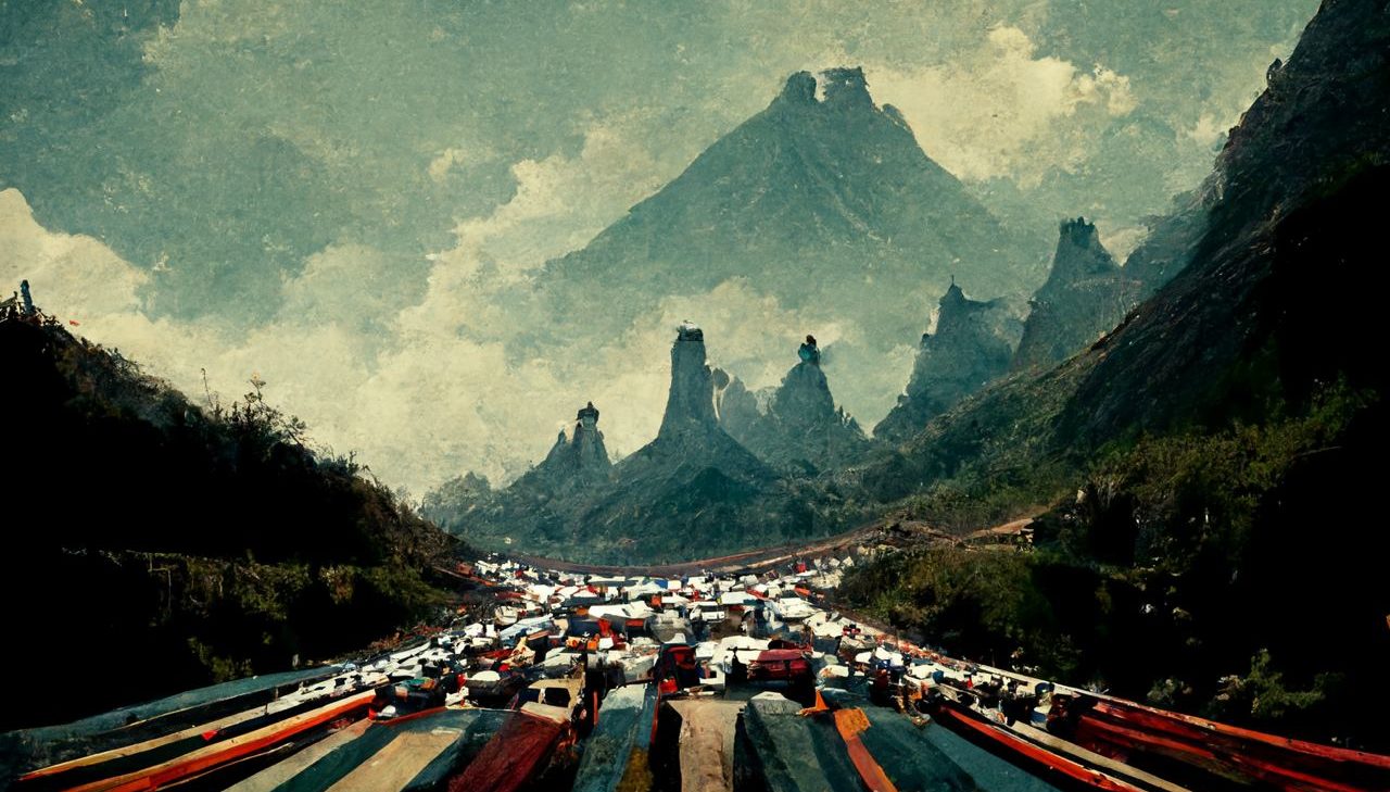 Очень многие идут пешком или едут на велосипедах, самокатах, гироскутерах — на всех возможных видах транспорта. Выглядит все это как апокалипсис: машины в пять рядов, встречные фуры, полный бардак, велосипеды, дети, собаки. Библейский сюжет абсолютно. У нас было два больших чемодана, это нам немного усложнило задачу. В целом там хорошая дорога, но нужно уворачиваться от огромного количества транспорта вокруг. В некоторых местах машины стояли настолько плотно, что пешком было не пройти. Тем, кто идет, я советую идти без вещей — их можно потом отправить почтой. Потому что с рюкзаком это могла бы быть хорошая прогулка: горы, погода хорошая.