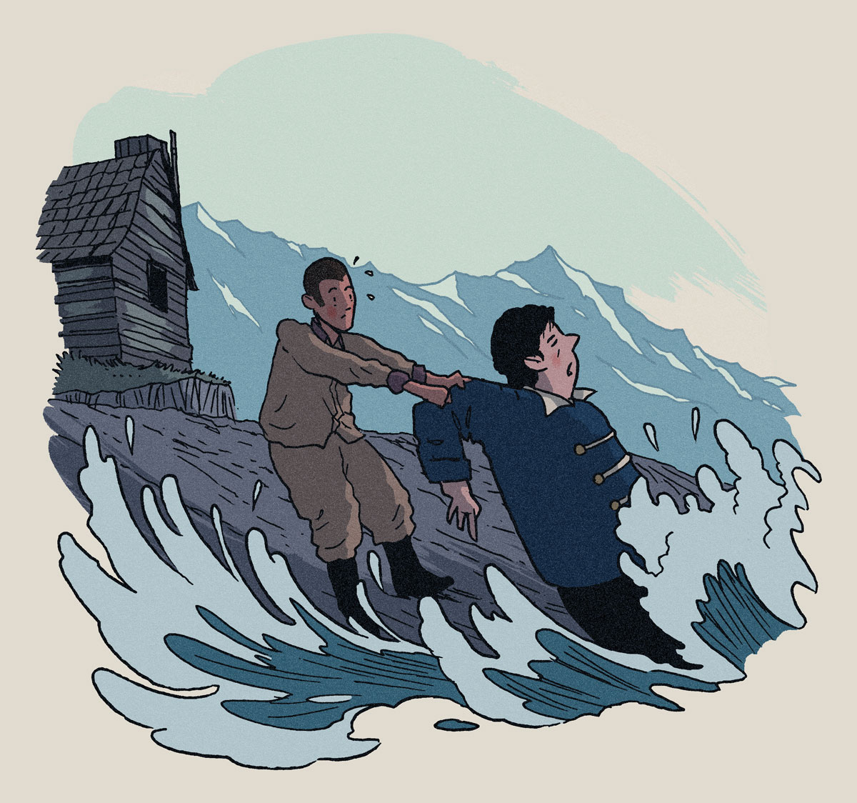 На берегу стоял сарайчик, и Эвансон уговаривал Олега оставаться в нем, греясь под одеялами из оленьих шкур. Олег отказывался. Эвансон предложил мальчику сардины, но Олег отказался и от них, в итоге съев только сухари. Следующие несколько дней оба спали на мешках с мукой и питались консервами. «Мы мало общались, — вспоминал Олег. — Я держался сам по себе».