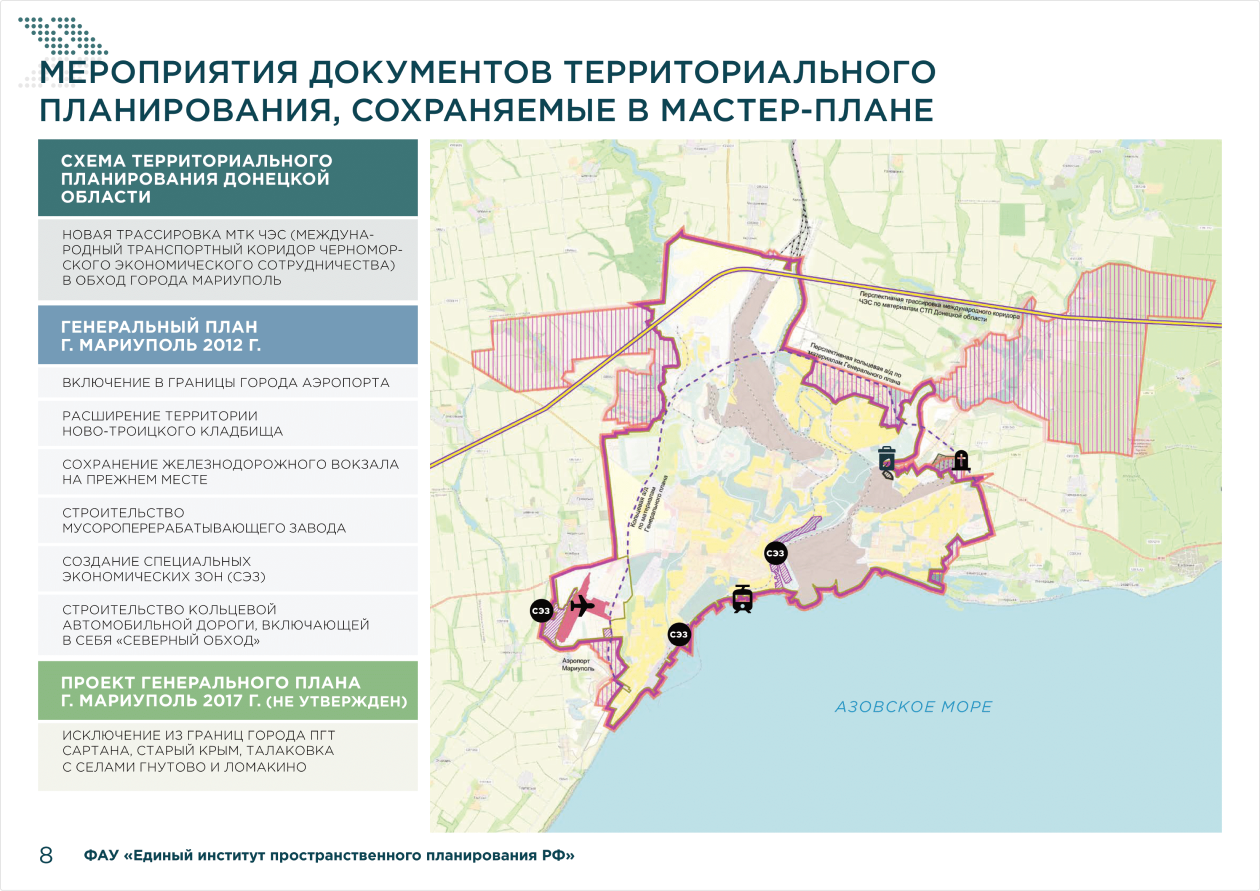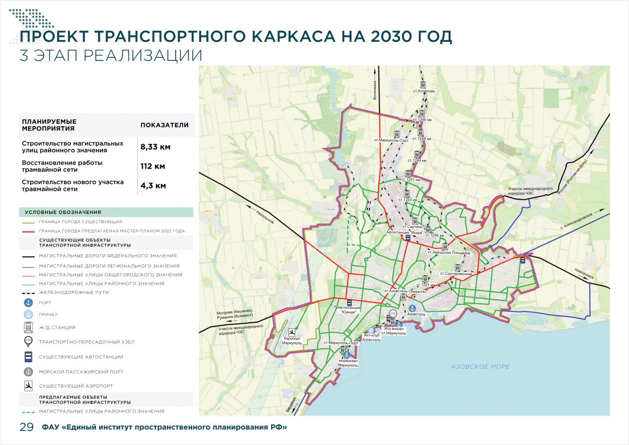 Мы приняли решение опубликовать этот документ целиком. Важно понимать, что любой мастер-план — это идея или намерения застройщиков. Цитаты из документа не отражают позицию редакции The Village о том, какое будущее ожидает Мариуполь на самом деле, — это только видение властей Российской Федерации.