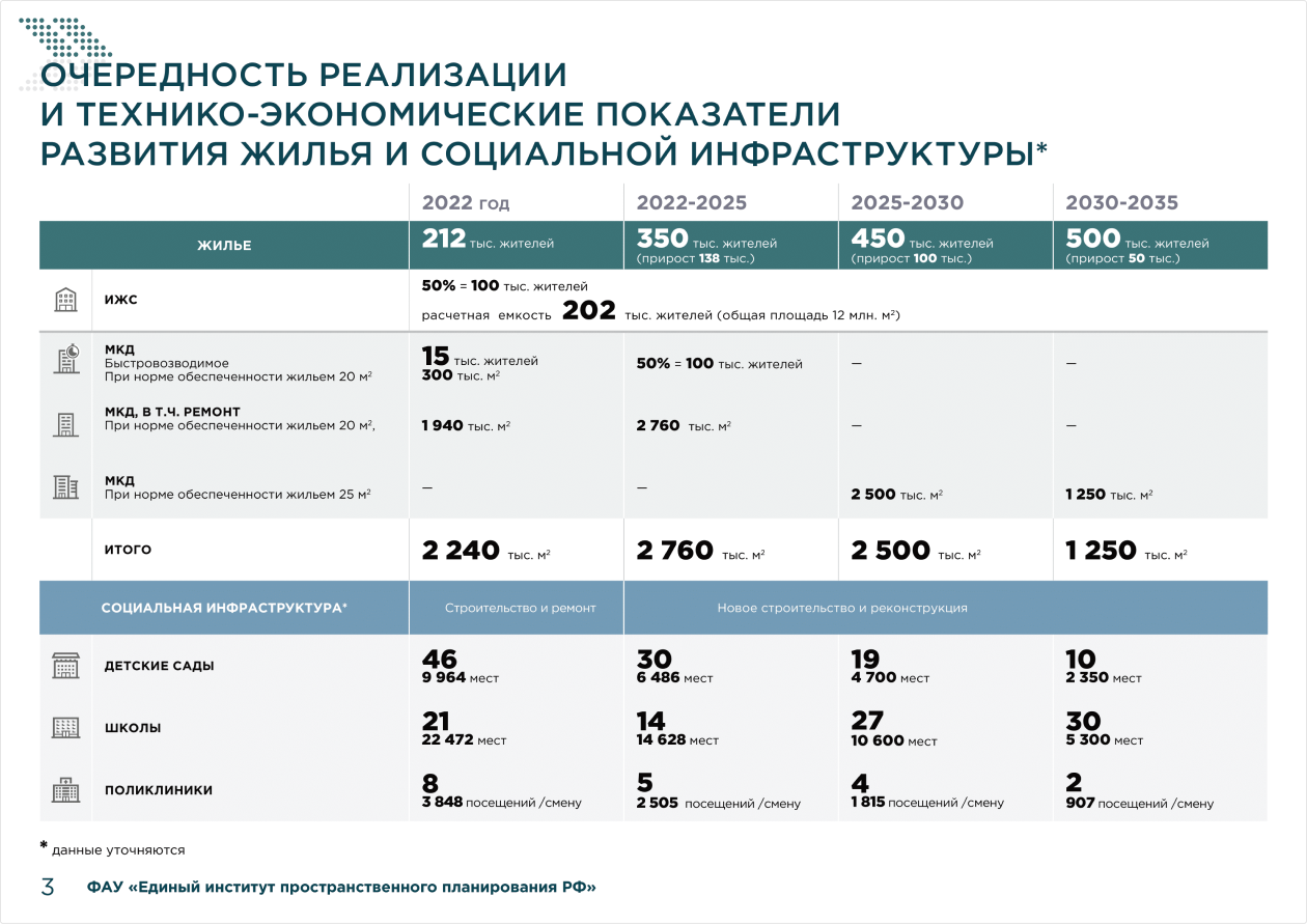 Комментарий эксперта: «В документе напрочь отсутствует социальная составляющая. Кто населяет город и кто будет его населять? Планируют увеличение населения более чем в два раза за десять лет — за счет чего? Кто будут эти люди? Какой у них будет половозрастной, гендерный состав? Получается, такой документ без получателя: мы проектируем, но не знаем, для кого».