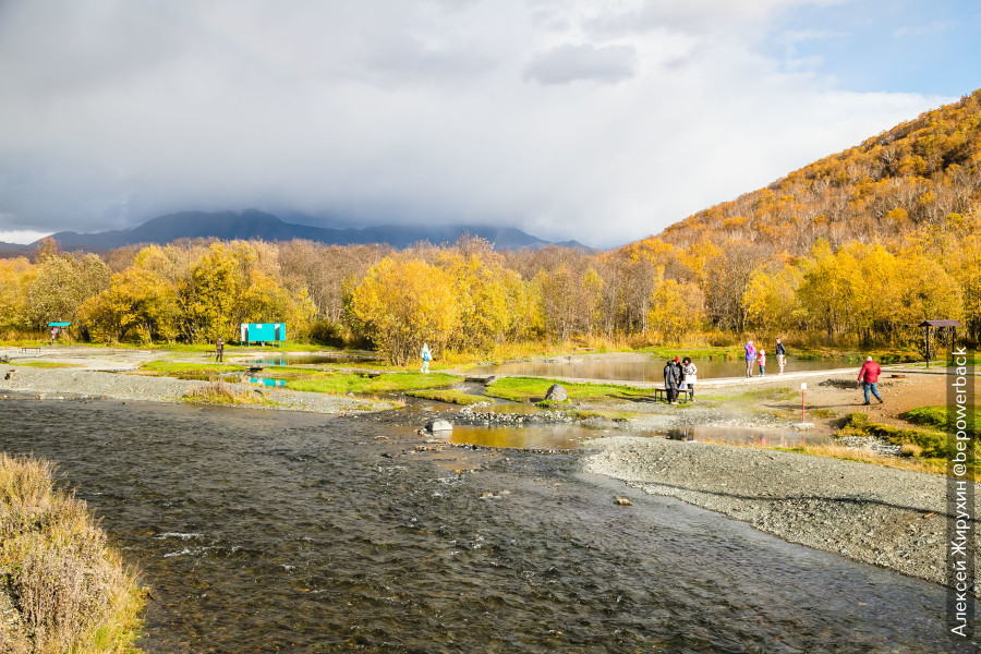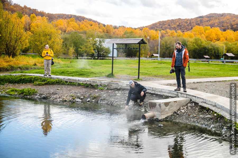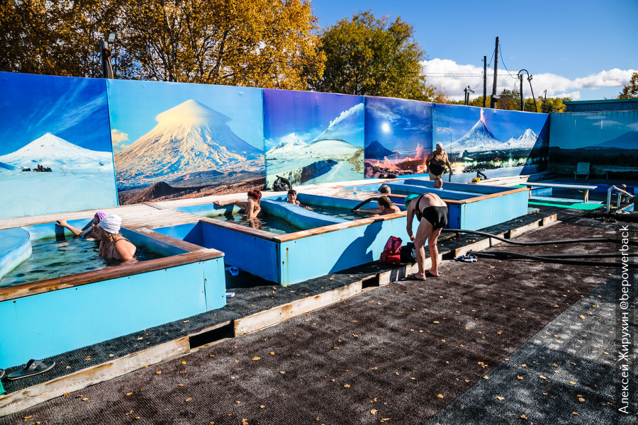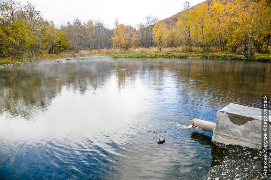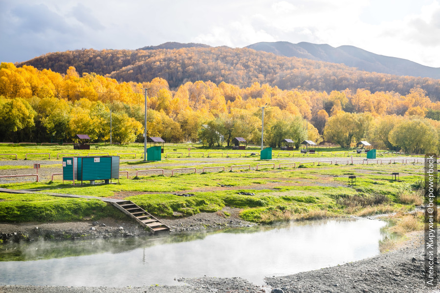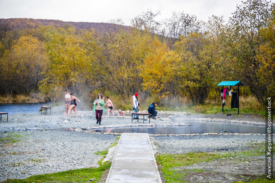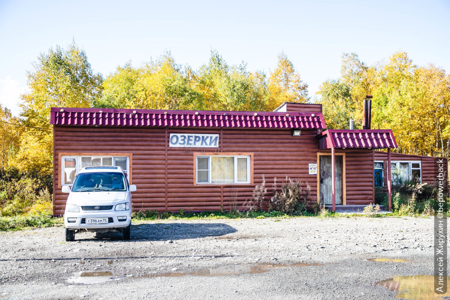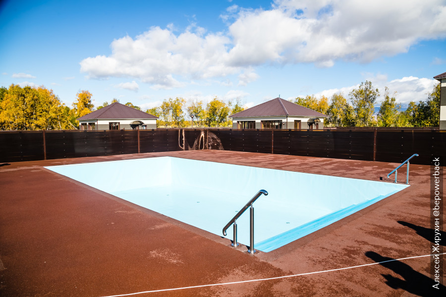 Сначала приехали на ТРК "Зеленовские озерки" в Елизовском районе. Это самый ближайший термальный курорт, который находится всего в часе езды от города. На этом месте под открытым небом построен профилакторий.