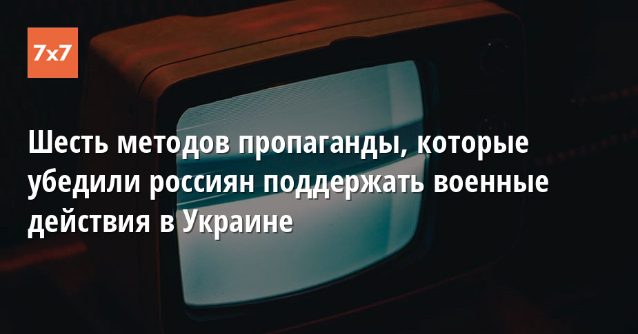 После начала военных действий в Украине российские медиа стали рассказывать о том, как пропаганда привела жителей страны к идее одобрения вооруженного конфликта, помогла властям убедить граждан в его необходимости. Вслед за пропагандистами люди спрашивают: «Где вы были восемь лет?», говорят о страдавших под обстрелами детях Донбасса, рассуждают, откуда готовилось нападение, и называют президента Украины Владимира Зеленского «наркоманом», а украинцев — «нациками». «7х7» описал шесть методов пропаганды, которые использовались до 24 февраля и стали особенно актуальными в последующие месяцы.