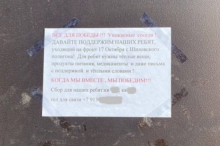 16:04 Листовки с датой якобы отправки «на фронт» мобилизованных жителей Новосибирска появились на подъездах в микрорайоне Чистая слобода. В них же есть просьба помочь людям «теплыми вещами, продуктами питания и медикоментами». Фото прислал читатель Тайги.инфо.
