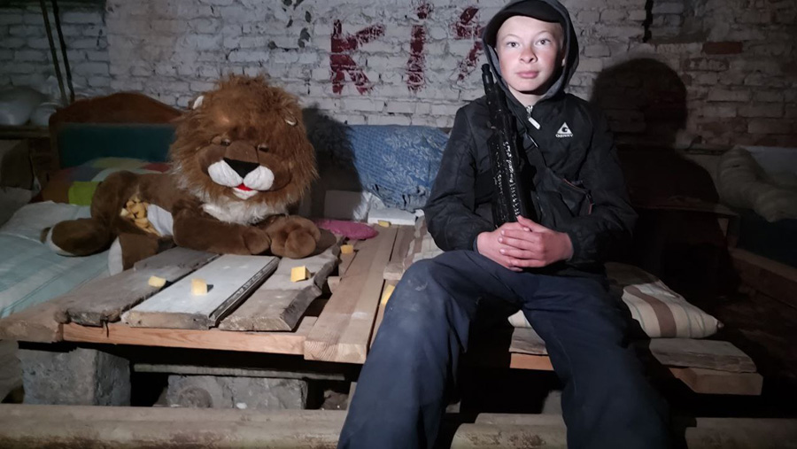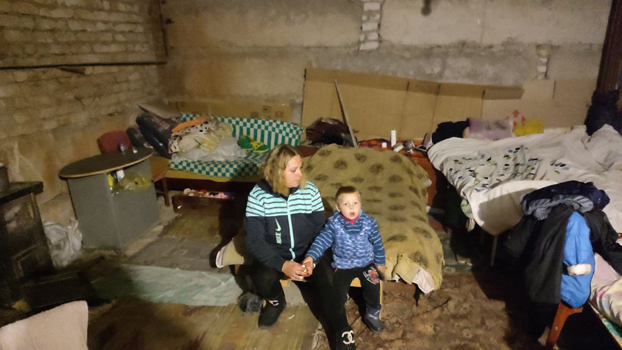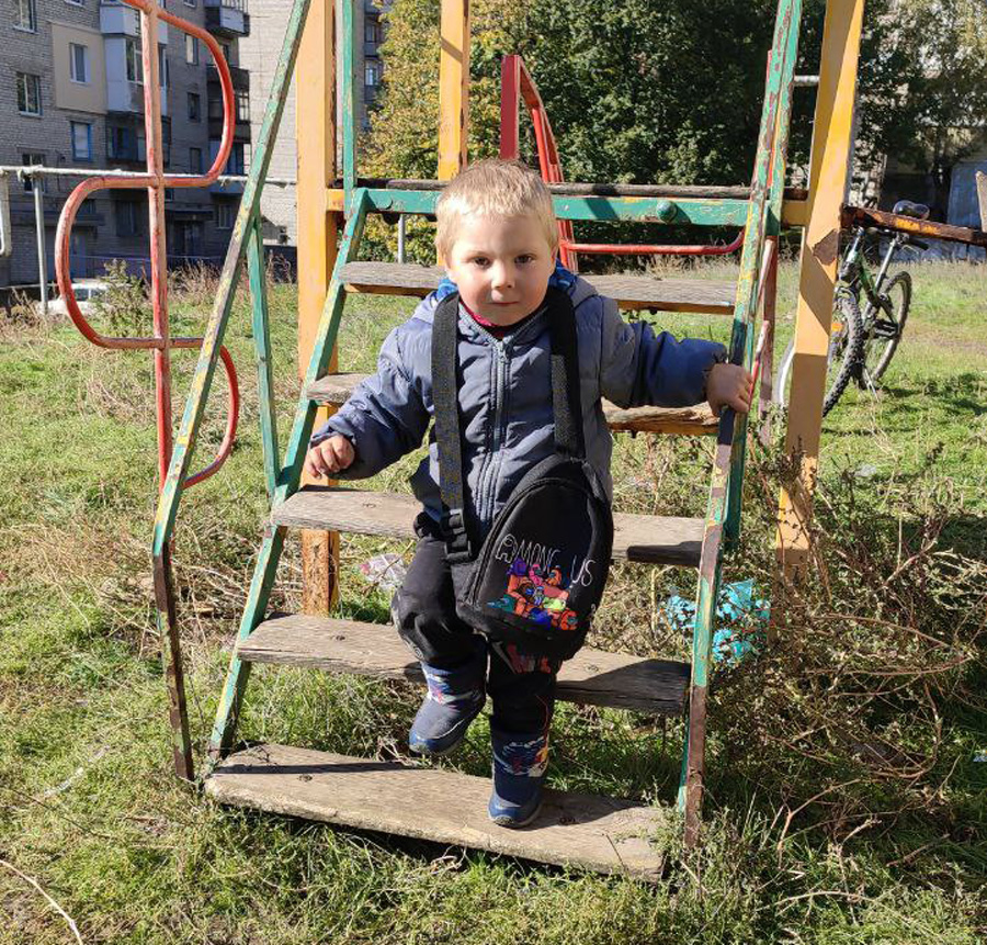 Самый младший из этих детей, Илюша, половину своей жизни провел под авианалетами, артобстрелами и оккупацией. С марта вместе с мамой и сестрой он вынужден жить в подвале. Его первым словом было "бабах".