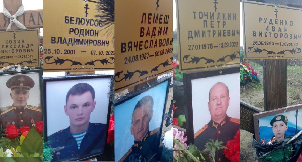 На кладбище Майкопа обнаружены более 10 могил, предположительно убитых в Украине военных. Гибель части из них подтверждается сообщениями из соцсетей, по остальным имеются венки с соответствующими надписями и надгробные фото в военной форме.