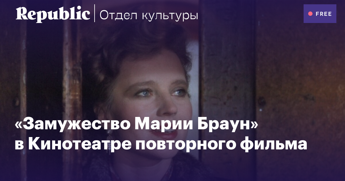 Я начал писать текст про «Замужество Марии Браун» не потому, что это один из самых любимых фильмов, а потому, что мне казалось, что он имеет какое-то очень непосредственное отношение к тому, что сейчас происходит. Правда, чем больше я погружался в этот фильм, тем острее я чувствовал: нет, он про что-то совсем другое. Но буквально несколько минут назад, когда я дописывал один из последних абзацев этого текста, на экране моего компьютера промелькнула свежая новость: «В Санкт-Петербурге для мобилизованных провели массовое бракосочетание». И я подумал: так вот же оно, наше «Замужество Марии Браун»! Другого у нас нету! Так что, все-таки имеет, и еще какое!