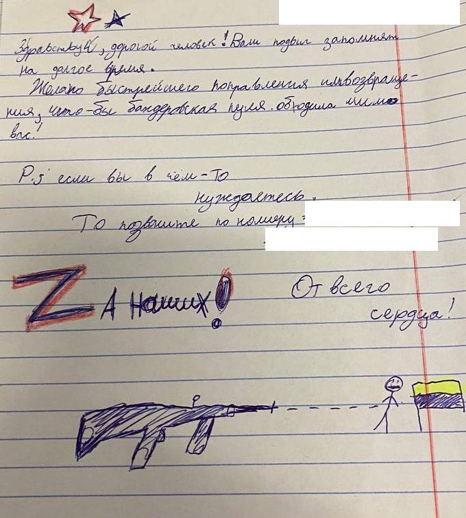 Школьникам показали образец письма, автор которого оставил номер телефона на случай, если солдат «в чем-то нуждается». Ученик школы №164 отметил, что школьникам выдали номер телефона учителя, который можно оставить в письме вместо своего. Кому конкретно отправят эти письма, детям не рассказали.