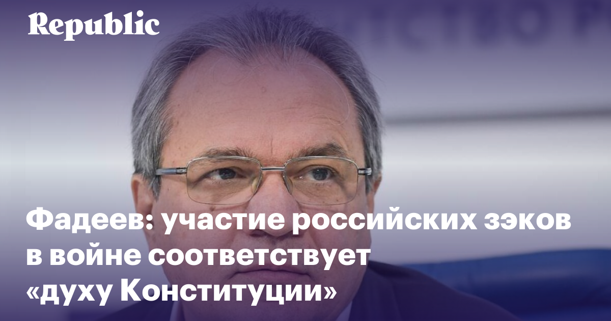 «Защита Родины — это прежде всего обязанность, но в каком-то смысле и право человека. Поэтому, исходя из духа Конституции РФ, наверное, даже если человек осужден, у него должно оставаться право пойти воевать за страну», — сказал Фадеев ТАСС.