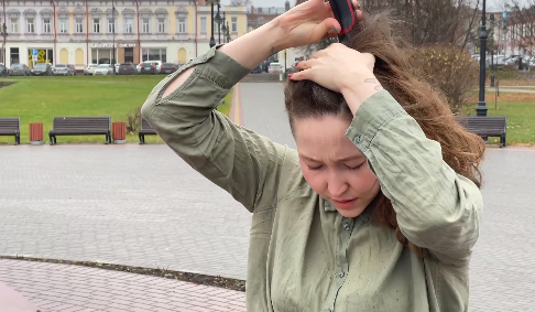 Жительница Томска побрила голову на антивоенной акции