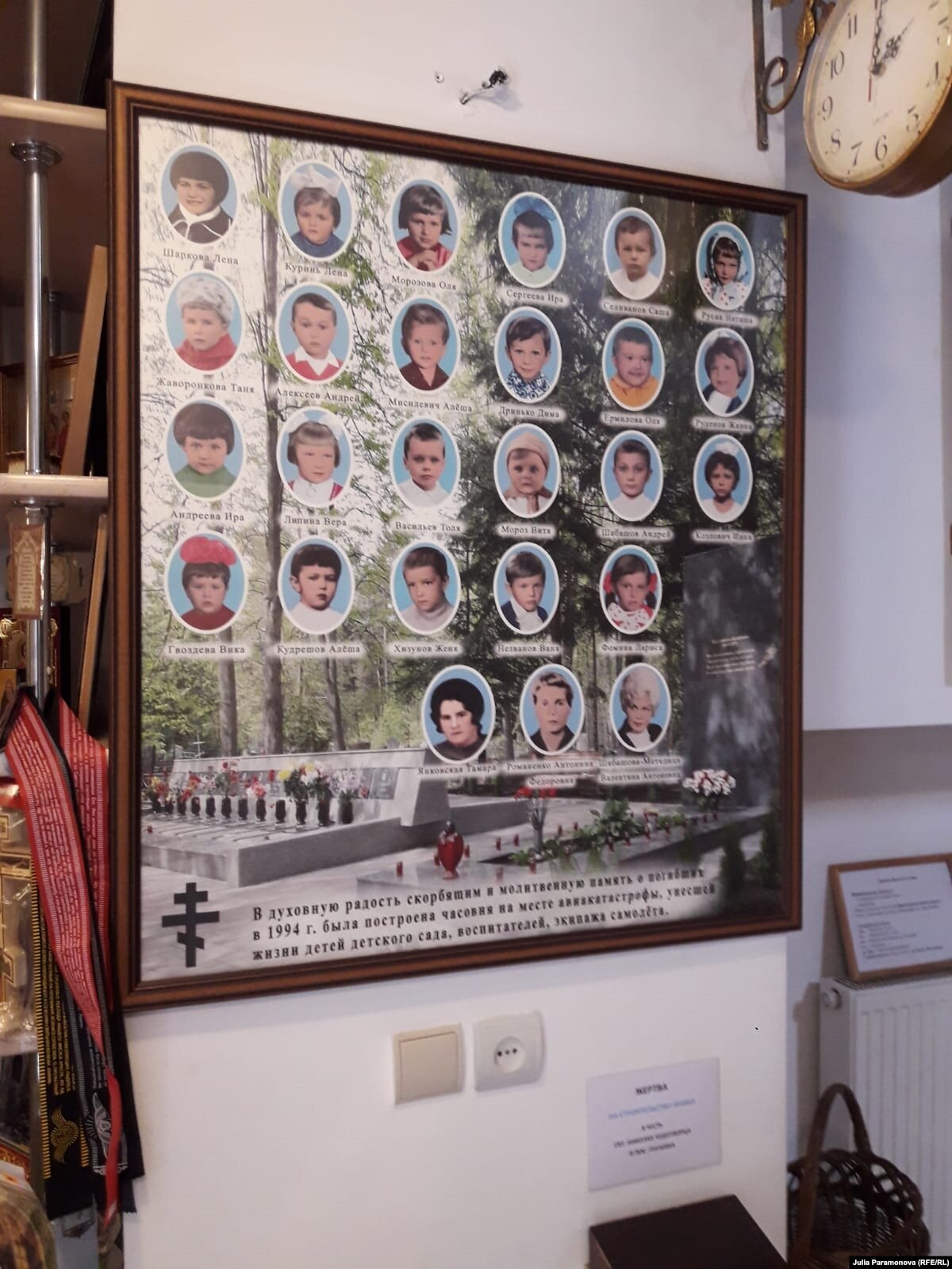 В 1994 году на месте крушения появилась небольшая часовня в память о погибших, ставшая первым православным храмом, построенным в послевоенные годы в регионе. Внутри – небольшой иконостас и фотографии погибших детей и воспитательниц.