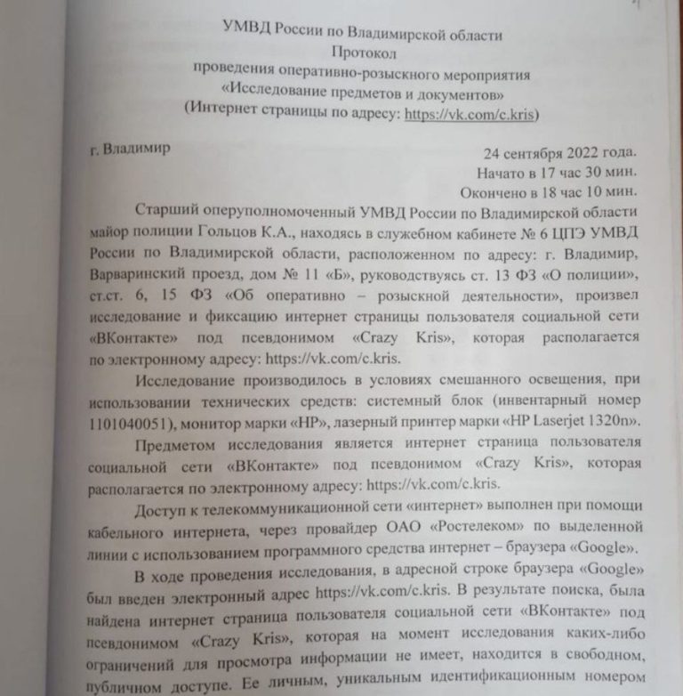 Силовики проводили по делу оперативно-розыскные мероприятия, о чём открыто сообщили в соответствующем протоколе. Закон позволяет делать это только в ограниченных случаях (например, когда возбуждено уголовное дело или готовится тяжкое преступление). Защита настаивала на признании протокола недопустимым доказательством, полученным в нарушение закона. Суд отклонил и это ходатайство, заявив, что «это были не розыскные мероприятия, а поиск информации».