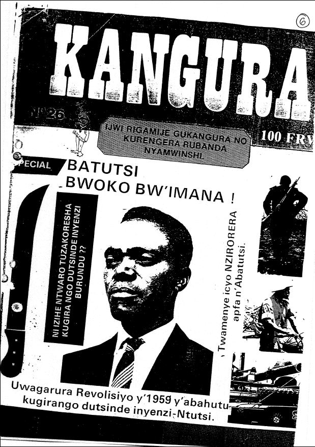 В 1991 году, за три года до геноцида, вышел номер "Кангуры", позже признанный преступным. На первой полосе был портрет Грегуара Кайибанда — первого президента Руанды, принадлежавшего к народу хуту и в результате революции 1959 года возглавившего страну. Под портретом была надпись "Повторим революцию хуту 1959 года, чтобы мы смогли победить тараканов-тутси?", а рядом – "Какое оружие нам следует использовать, чтобы победить тараканов раз и навсегда?". Слева от портрета был изображен мачете (Широкий, длинный нож, иногда с загнутым на конце лезвием. Обычно используется в тропических странах как оружие и сельскохозяйственное орудие – им прокладывают путь через заросли, собирают бананы и т.д. Во время геноцида в 1994 году хуту использовали мачете, чтобы убивать тутси). Трибунал впоследствии отметил, что этот материал призвал к уничтожению тутси как этноса, то есть к геноциду. "Нагнетая страх и пропагандируя ненависть, "Кангура" прокладывала путь к геноциду в Руанде, доводя население хуту до убийственного безумия", — говорилось в приговоре.