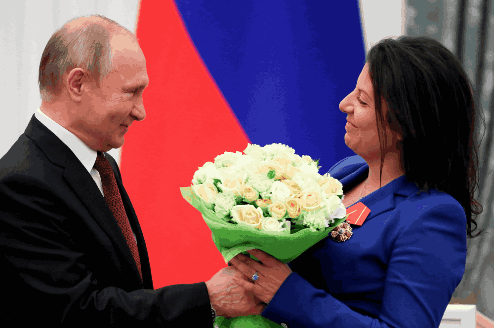 Маргарита Симоньян получает орден Александра Невского от Владимира Путина в 2019 году. Getty Images / "Бабель"