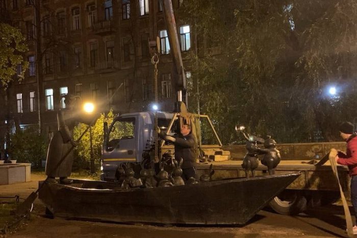 Из Некрасовского сада в Петербурге увезли скульптуру «Дедушка Мазай и зайцы». Ее отвезут на склад временного хранения, где скульптура будет находиться, пока ей не найдут новое место, пишет издание «Фонтанка».