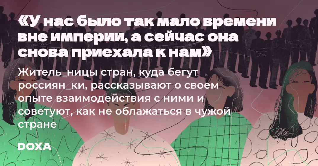 После начала полномасштабного вторжения РФ на территорию Украины многие россиян_ки уехали в Грузию, Армению, Кыргызстан, Казахстан, Таджикистан, Узбекистан, Азербайджан или Беларусь. После объявления о мобилизации только в Казахстан въехало более 200 тысяч россиян_ок. Несмотря на то что многие местные активно помогают приезжим, эта помощь не всегда встречается благодарностью. Местные жители сталкиваются с оскорбительными комментариями о культуре или языке своей страны, нежеланием ассимилироваться и узнавать историю, требованиями говорить на русском и другими проявлениями империализма.