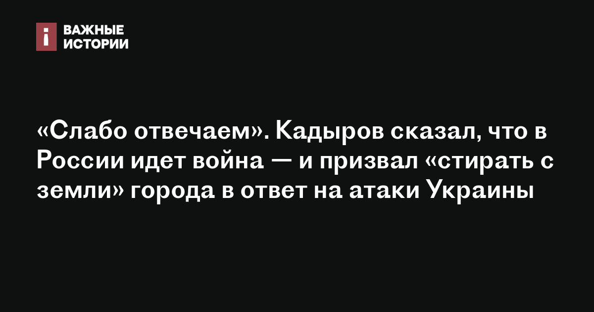 «Слабо отвечаем». Кадыров сказал, что в России идет война — и призвал «стирать с земли» города в ответ на атаки Украины