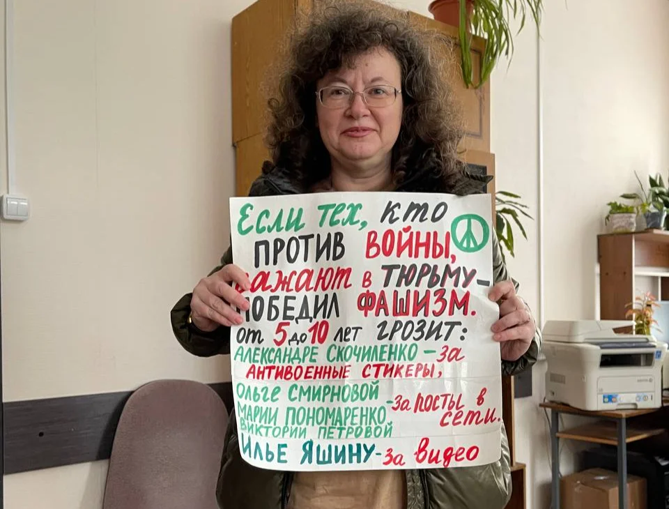 В последний раз активистку задерживали 10 сентября. Она вышла в одиночный пикет с плакатом «Если тех, кто против войны, сажают в тюрьму — победил фашизм».