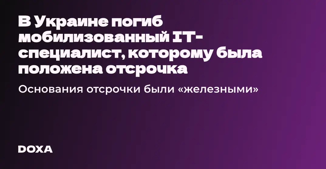 В Украине погиб мобилизованный IT-специалист, которому была положена отсрочка