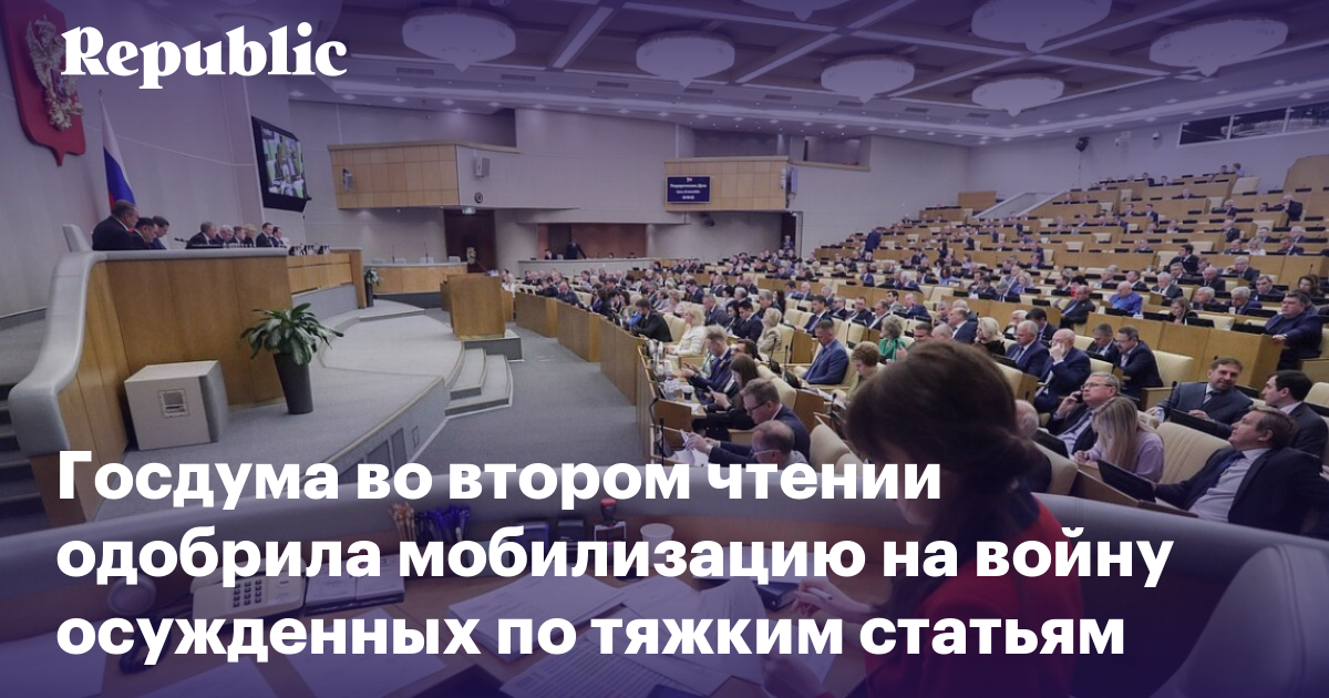 Госдума во втором чтении одобрила мобилизацию на войну осужденных по тяжким статьям
