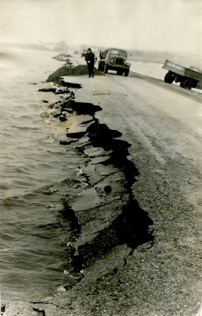 Александр бережно хранит в папке вырезки из газет, письма и рабочие записки, связанные с трагедией 69-го года. «Сколько пострадало — тогда не публиковали. Было не принято. И объяснили доходчиво, чтобы не сильно много распространялись. Но погибло тогда более 400 человек. <…> Траур был повсеместный… Меня направили проверить, что в Пересыпи делается. Там была бригада рыболовецкая. И был там один старик — сторож. Когда началась стихия, дом его стоял не ровно на север, а чуть-чуть сдвинут на северо-восток. И напор воды был на угол дома. Когда мы прибыли туда, мы смотрим: стены дома почти все разрушились, а стоит угол дома и в этом углу, как изваяние, человек. Этот старик поставил стол в угол, на стол поставил тумбочку, когда вода стала прибывать, на этот стол поставил табурет, а на этом табурете встал сам. <…> Когда мы пришли, он был иссиня-темный, зеленый. Но живой».