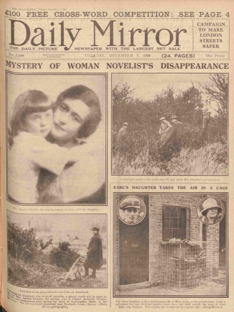 Французские, испанские, американские и немецкие газеты выходят с сообщением об исчезновении известной английской писательницы. «Миссис Агата Кристи, писатель, исчезла при невыясненных обстоятельствах из своего дома в Англии» («New York Times»).
