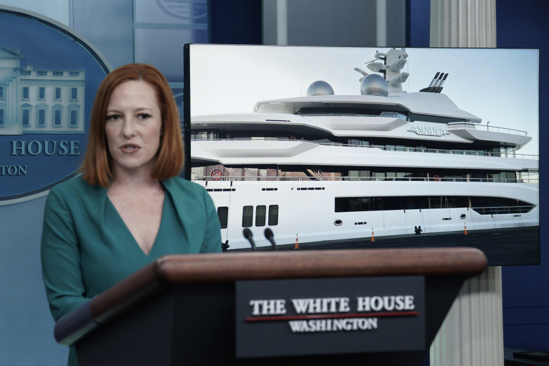 Пресс-секретарь Белого дома Джен Псаки сообщает об аресте мегаяхты одного из российских олигархов на Фиджи (5 мая 2022). По данным правительства США, яхта «Амадея» оценочной стоимостью 325 миллионов долларов, принадлежит российскому миллиардеру и члену Совета Федерации Сулейману Керимову, против которого введены западные санкции