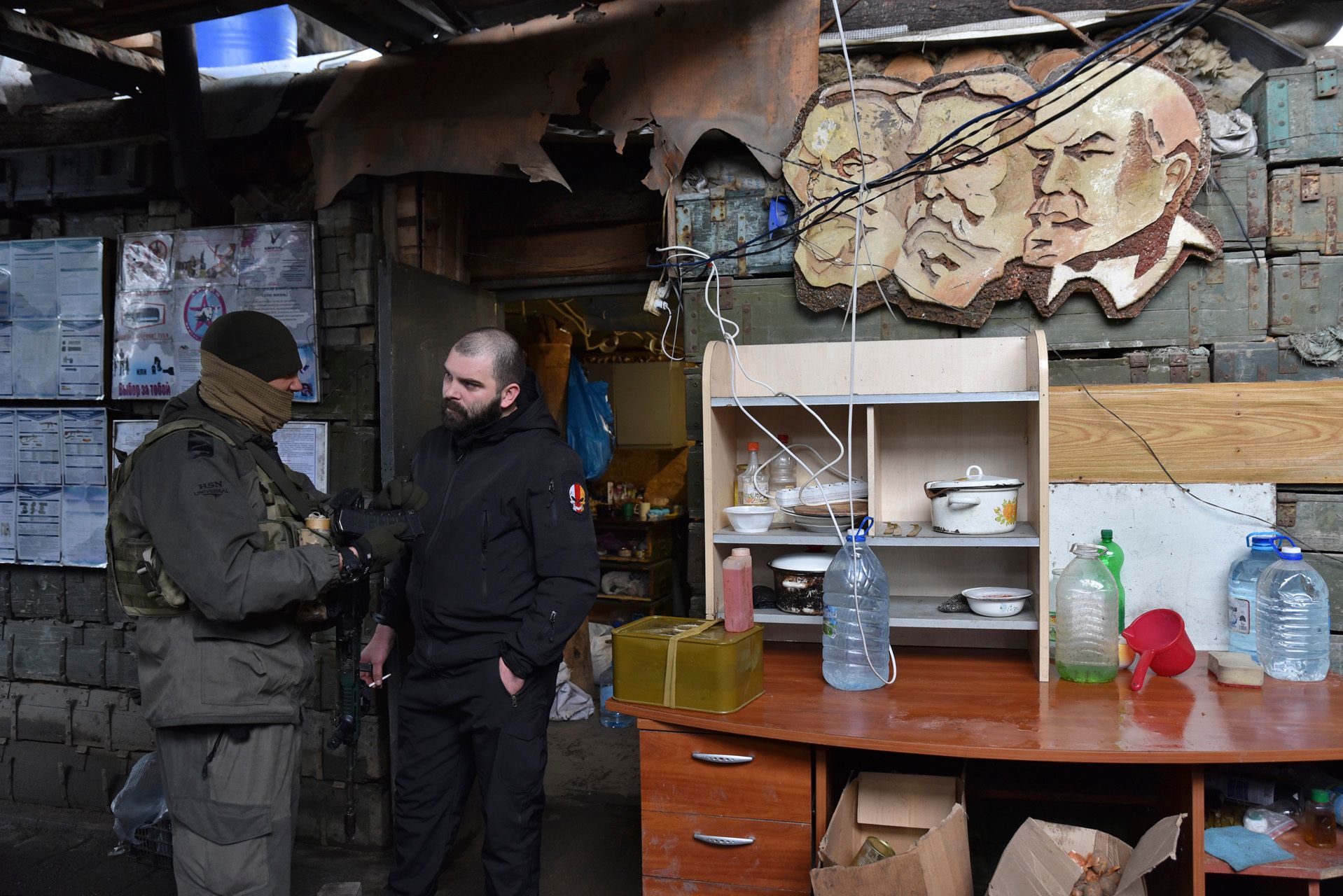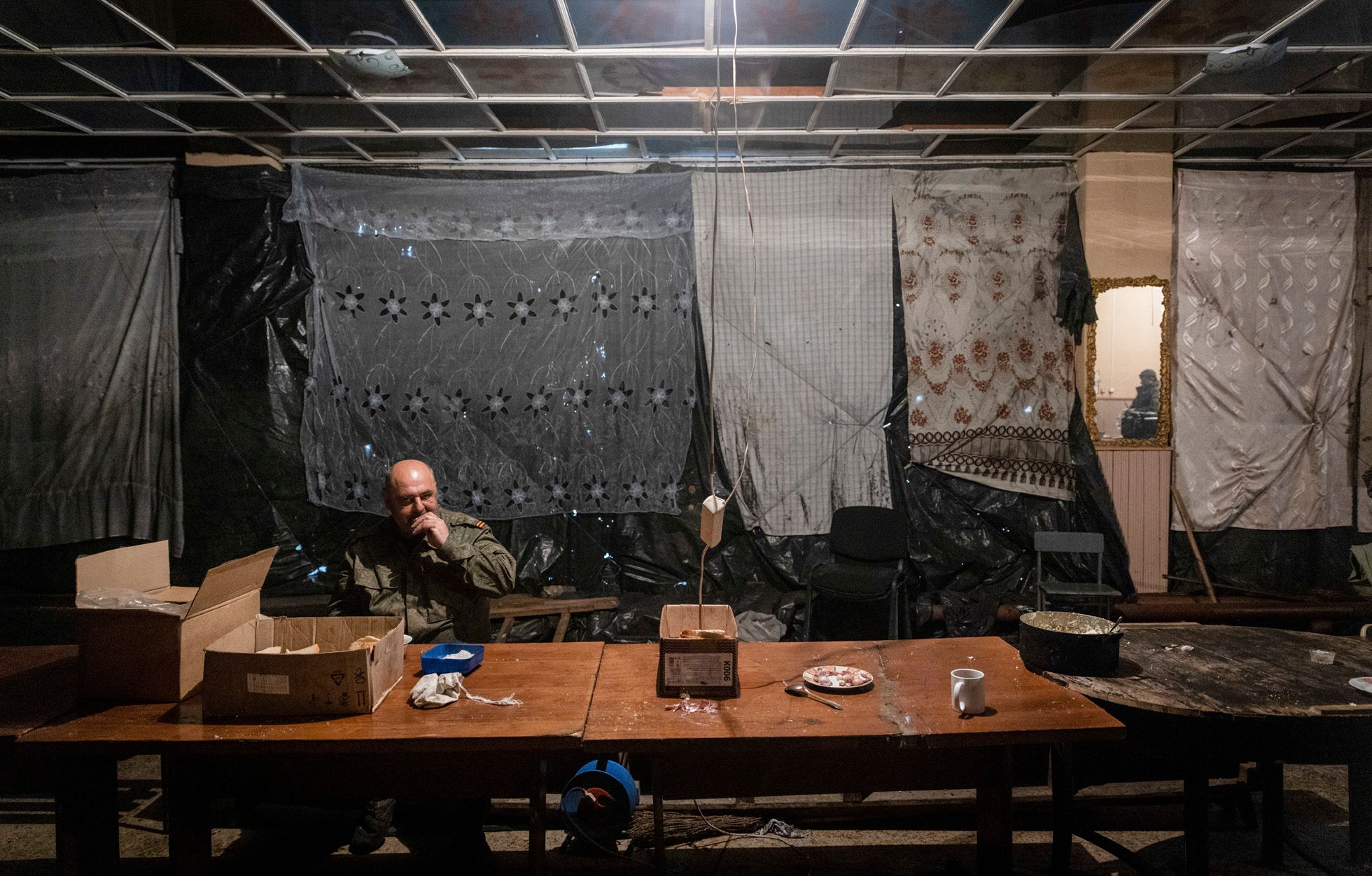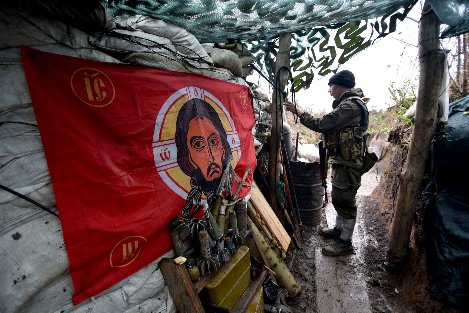 Николай Тришин / ТАСС Боец интернациональной бригады «Пятнашка» аннексированной ДНР на позициях под АвдеевкойНиколай Тришин / ТАСС Флаг с изображением Христа в иконографии Спаса Нерукотворного на позициях под Авдеевкой. Интересно, что до 2022 года флаг Пензенской области представлял собой аналогичное полотно, но не красного, а желтого цвета с зеленой полосойНиколай Тришин / ТАСС Изображения основателей коммунистической идеологии и диалектического материализма Карла Маркса, Фридриха Энгельса и Владимира Ленина на позициях бойцов бригады «Пятнашка» аннексированной ДНРСтанислав Красильников / ТАСС Аннексированная Луганская область Украины. Российский военный (согласно автору фотографии, «доброволец из числа бывших военнослужащих армии РФ») на позициях на линии соприкосновенияСтанислав Красильников / ТАСС Совместная трапеза военнослужащих в аннексированной ЛНРСтанислав Красильников / ТАСС Еда военных в ЛНРСтанислав Красильников / ТАСС Импровизированные казармы в Луганской областиСтанислав Красильников / ТАСС Российские военные в Луганской области