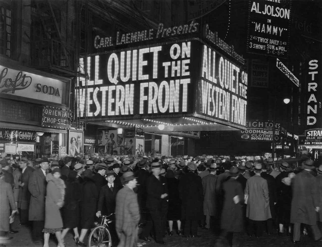 Irving Browning / The New York Historical Society / Getty Images Премьера фильма «На Западном фронте без перемен» в Нью-Йорке, 1930 год
