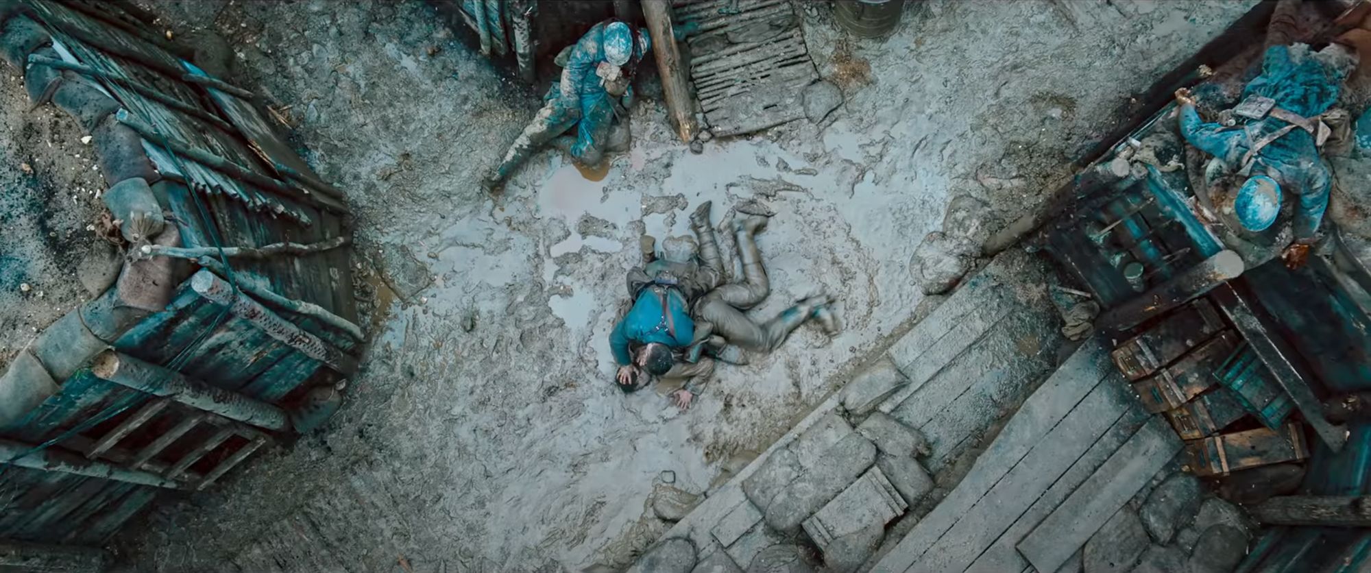 Именно через камеру Френда мы видим дымящиеся окопы, снопы колючей проволоки и земляные воронки от разорвавшихся снарядов с коричневым супом из фрагментов человеческих тел. Натурализм немецкой картины превосходит все мыслимые, допустимые для показа на большом и малом экране ужасы войны. Бергер, Френд и сценаристы шагнули туда, куда побоялся или не захотел ступить Мендес, — во тьму.