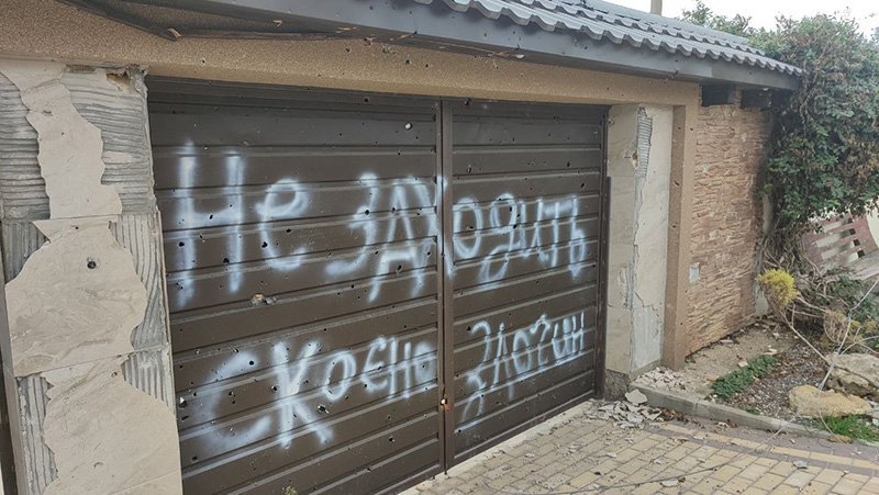 Вот так, с шутками и прибаутками, Сергей проводил меня к месту расправы над местными жителями, его хорошими знакомыми. Это семейная пара. Татьяна и Николай Мелетенко. Люди в годах, не выезжали потому, что некуда и не на что. Три двухэтажных многоквартирных дома опустели - Мелетенко оставались одни. "Россияне приходили грабить. Квартиры и гаражи напротив. А Коля все смотрел. Те грабят, он смотрит. Примелькался. Вот и убили. Ну и жену заодно, не оставлять же ее одну", - рассказывает Сергей. Тело застреленного Николая лежало на балконе. Татьяны - на кухне. В квартире до сих пор стоит невыносимый запах.