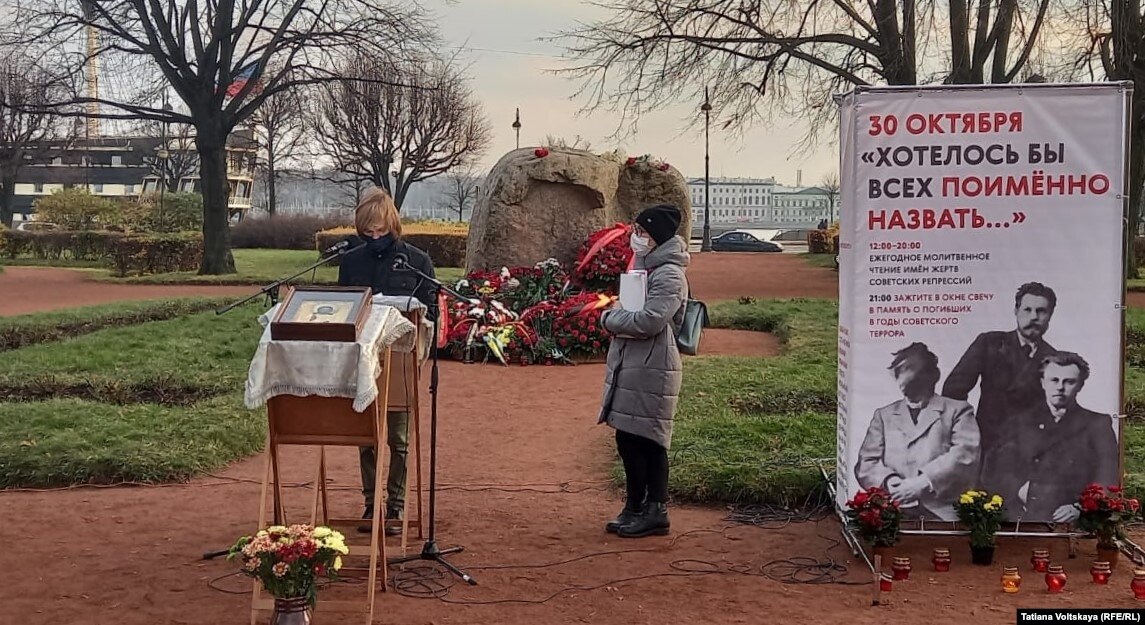 30 октября - День памяти жертв политических репрессий. Жители Петербурга зачитали имена репрессированных в рамках акции "Хотелось бы всех поименно назвать…". Одно из мероприятий прошло около Соловецкого камня, где собралось несколько десятков человек.
