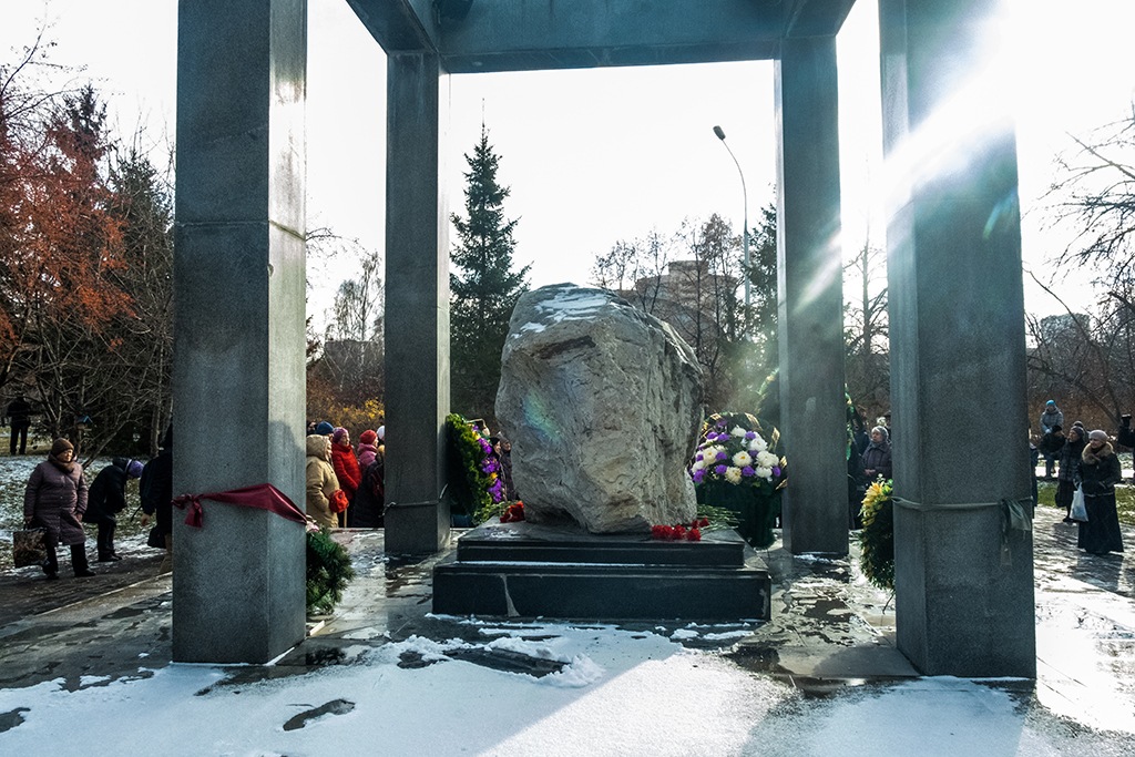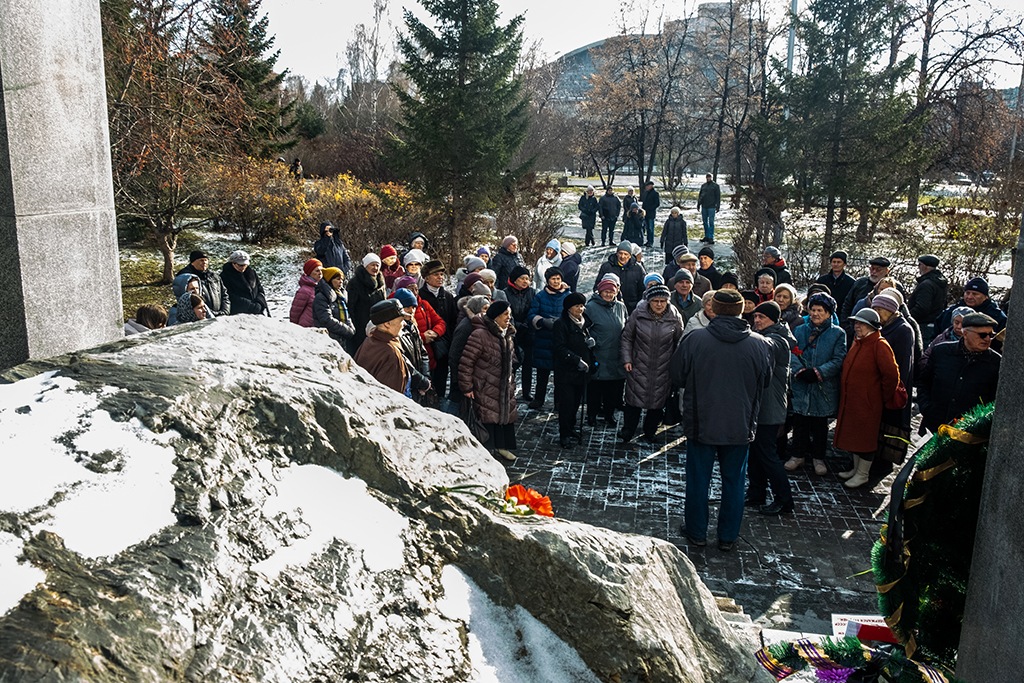 30 октября в Новосибирске у Камня Скорби в Нарымском сквере собрались десятки человек. По наблюдениям корреспондента Тайги.инфо, люди приходили и уходили — они рассказывали истории своих репрессированных родных, поименно зачитывали списки жертв. Также на мероприятии был представлен эскиз памятника жертвами государственного террора.