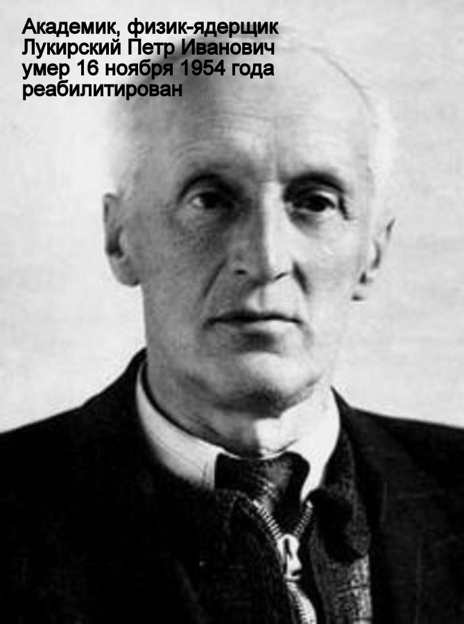Один из выдающихся представителей первого поколения советских физиков Пётр Лукирский был членом-корреспондентом Академии наук и заведовал кафедрой электричества физического факультета ЛГУ, когда в 1938 году его арестовали по ложному обвинению. Наказание отбывал в Усольлаге, а затем в лагере на Печоре. После ходатайств таких знаменитых физиков, как Абрам Иоффе и Пётр Капица, Лукирского освободили досрочно в октябре 1942 года. После войны он работал в области ядерной физики, исследовал процессы взаимодействия нейтронов с веществом.