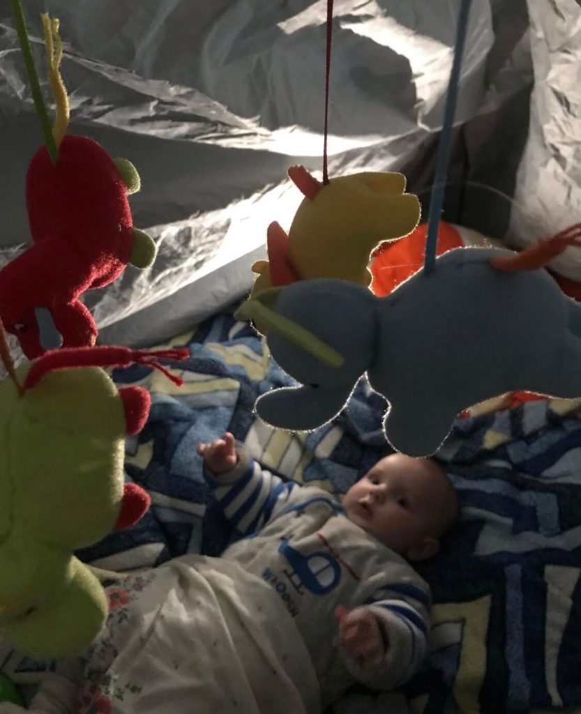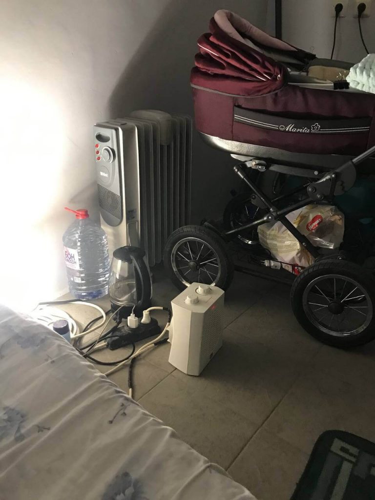 Свет и газ в доме Лины и Алексея Полищуков пропали еще 26 февраля, и паре пришлось придумывать, как согреть и накормить грудного ребенка. «Мы смастерили из брезента палатку для ребенка, чтобы ему было теплей. Соседи слили нам бензин из своих газонокосилок, у нас был генератор, и мы им питали “дуйчик” (тепловентилятор. — Прим. «Холода») первые дни, — вспоминает Лина. — Потом, когда бензин закончился, муж где-то нашел буржуйку, мы замазали ее глиной, чтобы не дымила, и так грелись. Она все равно задымила — мы чуть не задохнулись. В итоге выбросили ее и сидели в холоде. Несмотря на мороз, мне приходилось ребенка и мыть, и переодевать. В подвале все было в пыли: бутылочки со смесью стояли рядом со строительными инструментами».