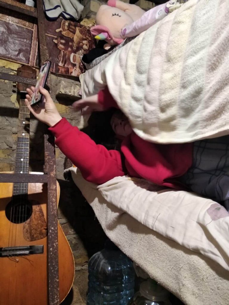 26 февраля ударили и по дому фотографа Лины Полищук. «Снаряд попал в один из домов, жившая там семья погибла. Мужчина из соседнего дома вышел посмотреть, что произошло, и его тоже разорвало уже следующим снарядом, — вспоминает Полищук. — Тогда стало по-настоящему страшно: мы поняли, что бьют по нашим частным домам. С тех пор я отказалась вообще выходить из подвала. Свекр выходил, готовил суп, а я даже по нужде не выходила, использовала ведро».