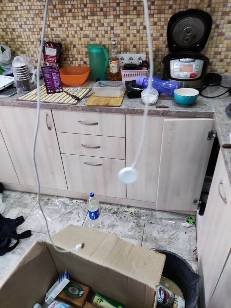 Чат жильцов дома Татьяны Левдар на Тарасовской улице переполнен свидетельствами последствий мародерств. Вернувшиеся домой бучане обнаружили пропажи телевизоров, лампочек, пылесосов, межкомнатных дверей и даже унитазов. Люди тщательно фиксировали убытки и делились с соседями фотографиями и видео из ограбленных квартир. Некоторых жильцов ожидала встреча с грудами грязной посуды, пропахшими куревом матрасами и человеческими экскрементами.