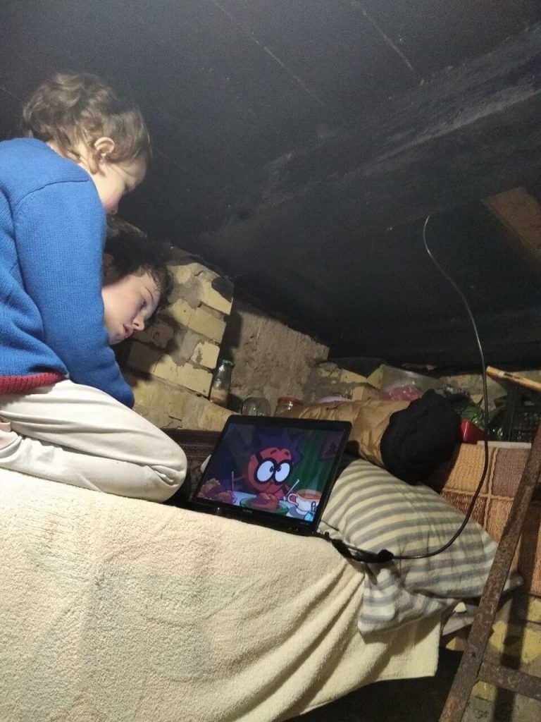 Деркач вспоминает, как до войны они с дочерью пили какао в их любимом кафе, а зимой проводили время в так называемом зимнем городке в центре Бучи, где ежегодно разбивали большой каток, ставили карусели для детей и новогоднюю елку. Теперь семья сидела в подвале вместе с соседями. Чтобы не пускать незнакомых людей, жители дома решили, что будут использовать кодовое слово — «паляниця» (разновидность украинского хлеба из пшеничной муки. Слово трудно правильно произнести русскоговорящим, поэтому украинцы часто его используют, чтобы отличить своих. — Прим. «Холода»).
