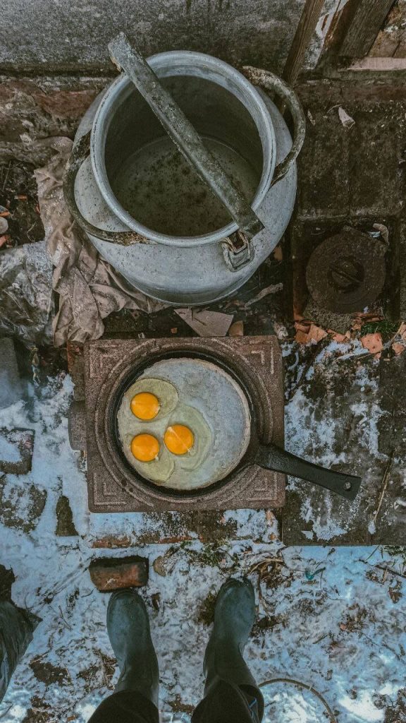 Юрий рассказывает, что в оккупации люди ели замоченную в холодной воде крупу и кошачьи консервы, а иногда и продукты с помойки: «Нам надо было выживать, и принципы свои пришлось подвинуть».