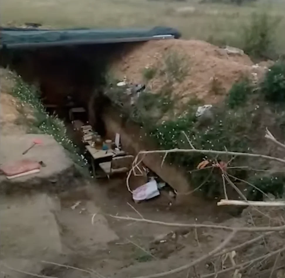 In one of the videos, he demonstrates a dugout shelter covered by a tent and calls this place a dwelling. In another video, he speaks about a big house where Russian servicemembers stayed.