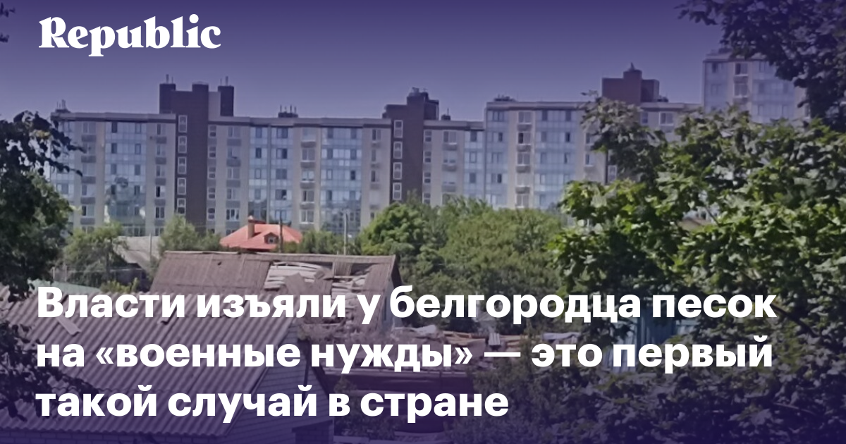 В Белгородской области администрация Краснояружского района изъяла у местного жителя Сергея Литвинова песок на «военные нужды» и не компенсировала ему потери. Мужчина рассказал об этом на странице губернатора Вячеслава Гладкова в соцсети «ВКонтакте», но чиновники отделались лишь устным замечанием. Это первый такой случай в стране после введения Владимиром Путиным военного положения в аннексированных территориях Украины и введения ограничений в приграничных регионах РФ.