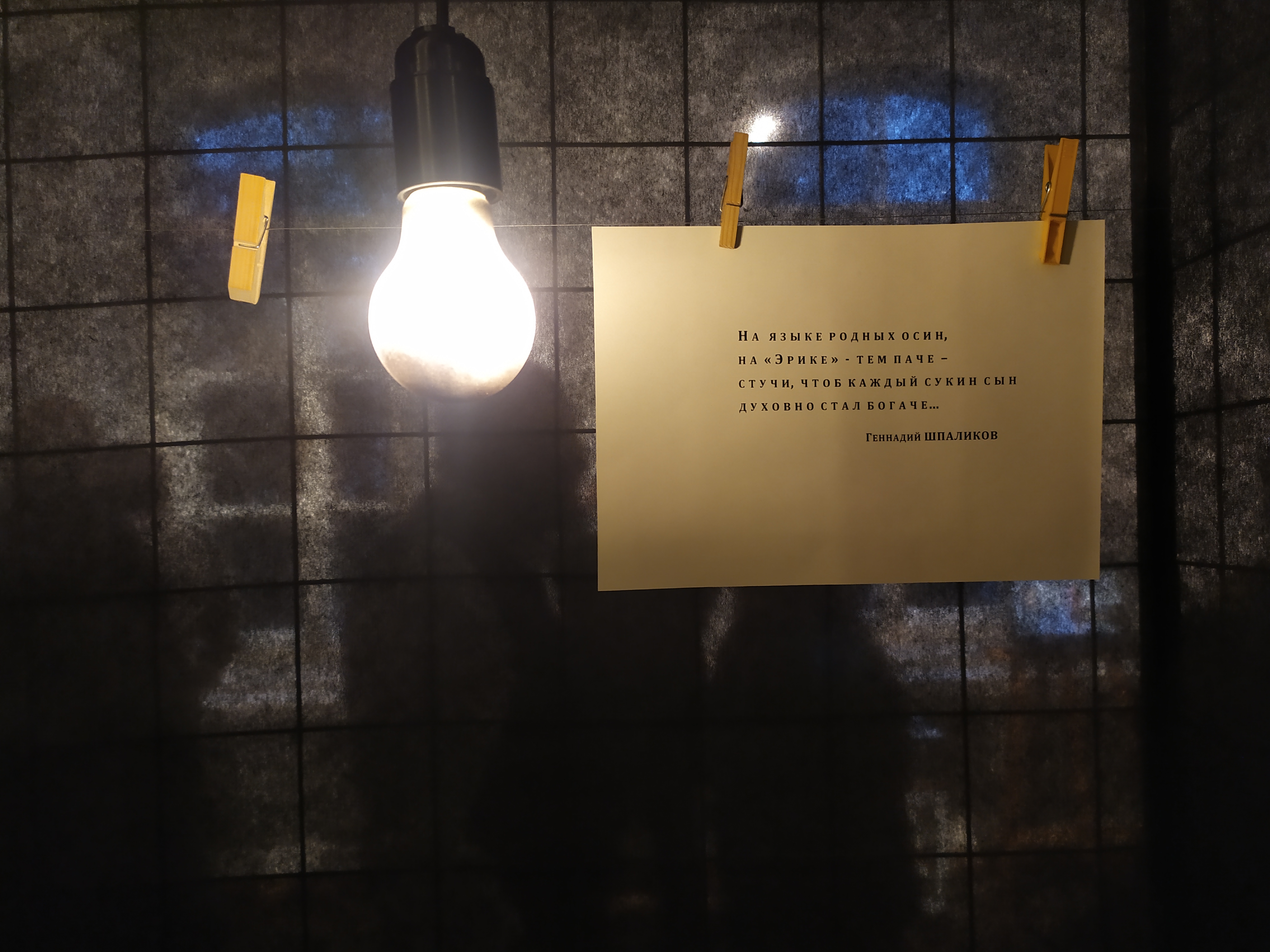 Эмиль Капелюш, художник выставки, создал пародию на современный офис – несколько комнаток, рассчитанных на одного человека, в каждой из которых есть рабочее место: стол, стул, лампа и та самая главная героиня самиздата – печатная машинка, модели “Эрика” или другая. В этом микромире, где есть только ты, твой текст и стук клавиш (даже без выхода в интернет), можно полностью погрузиться в то, что ты читаешь и переписываешь, будь то стихи Мандельштама или Бродского, роман Булгакова или Набокова, а может, речь на суде очередного политзаключенного… В этом странном офисе, с карболитовыми лампами и тонетовскими стульями (Михаэль Тонет – основатель легендарной мебельной фирмы. – СР), есть и “красная комната” для проявки фотографий, и проигрыватели с пластинками “на костях” (сленговое название самодельных пластинок, изготовлявшихся на рентгеновских снимках. – СР), и самодельные журналы, которые умудрялись выходить десятилетиями, и переписанные вручную сборники стихов.