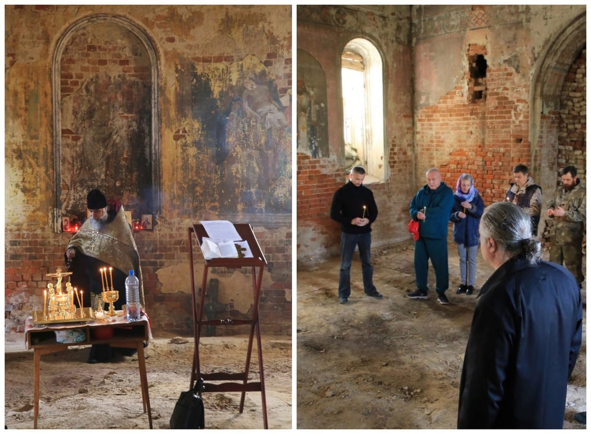 Молебен завершил работы по уборке заброшенной церкви — последние 50 лет она была завалена старыми удобрениями. Часть из них волонтёры отвезли в мешках на утилизацию, остальное закопали у храма.