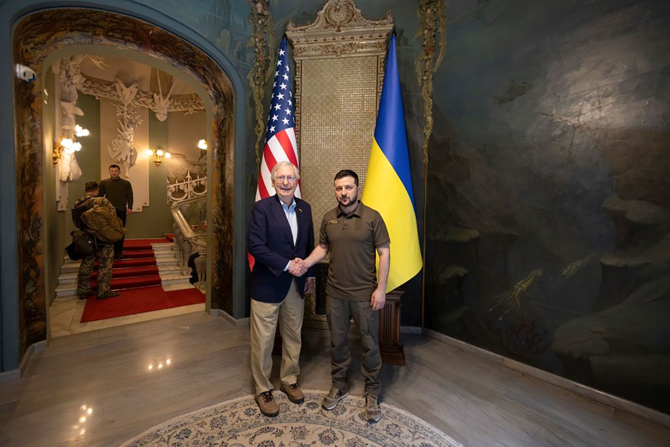 Пресс-служба президента Украины / AP / Scanpix / LETA Встреча президента Украины Владимира Зеленского и лидера фракции республиканцев в сенате США Митча Макконнелла в Киеве. 14 мая 2022 года