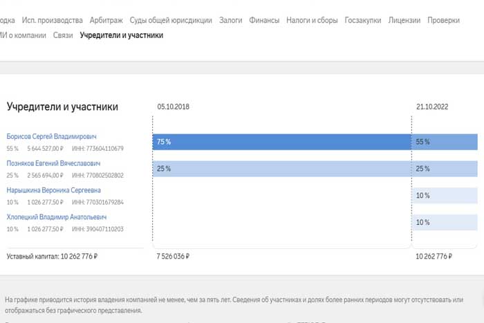 По данным «Контур Фокус», Нарышкина приобрела долю 21 октября 2022 года.