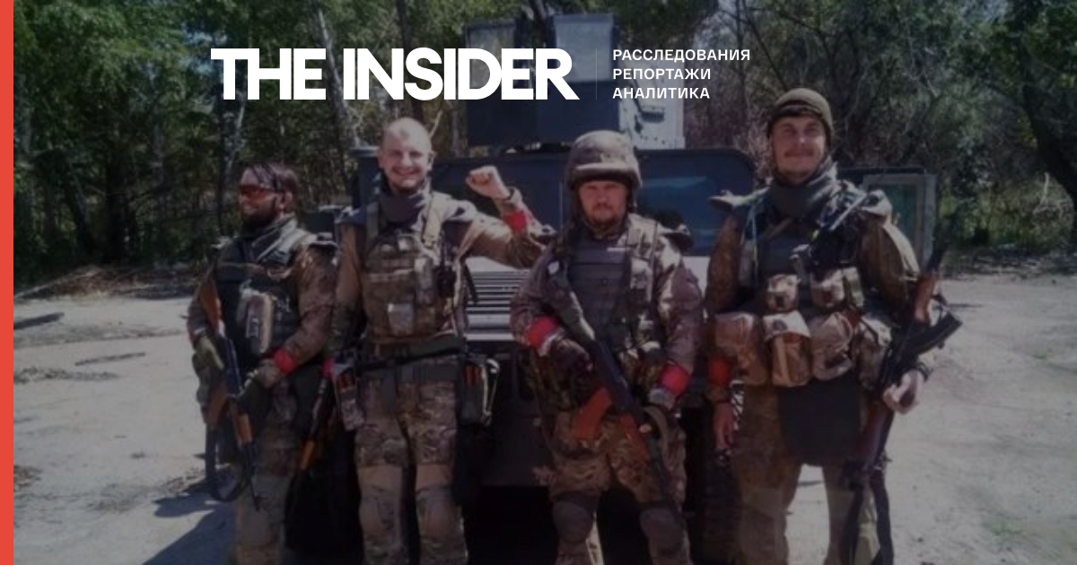 Лидеры С14 Александр Войтко (крайний справа) и Евгений Карась (второй слева) во время АТО на Донбассе. Фото с сайта Русской службы Би-Би-Си.
