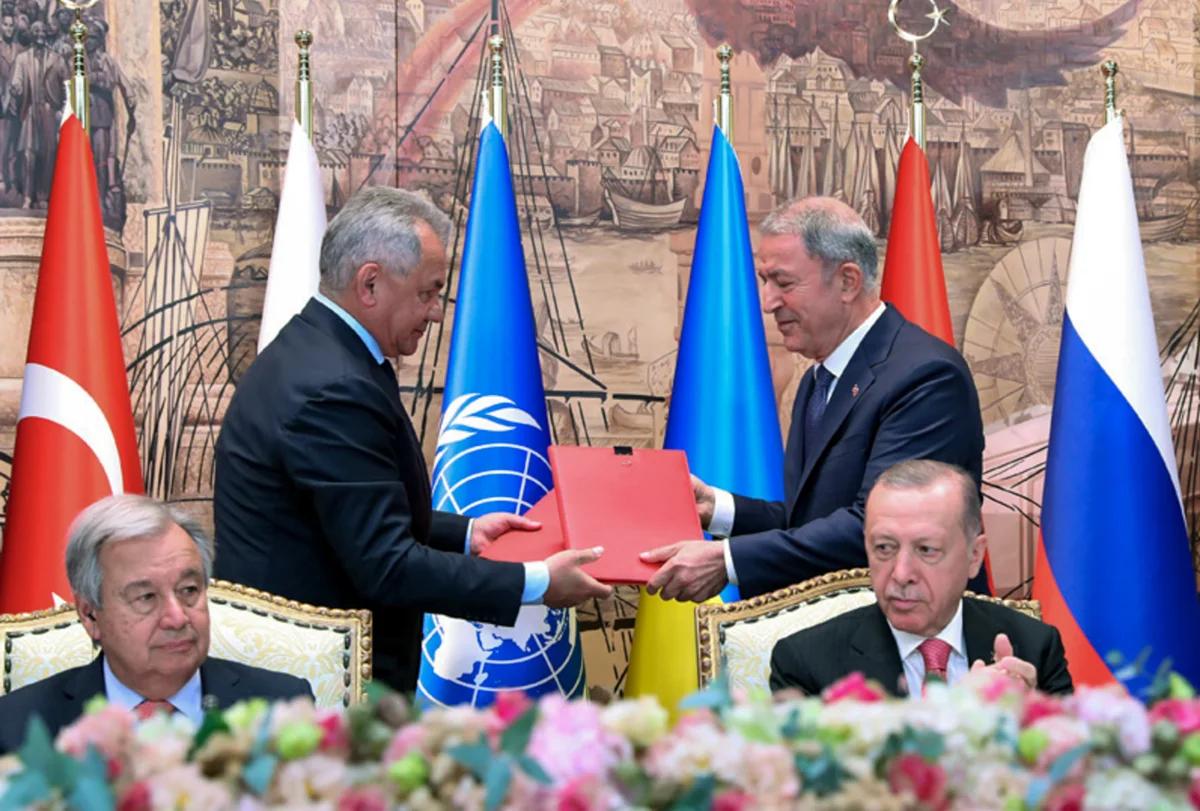 Результатом длительных и сложных переговоров стала «Инициатива по безопасной транспортировке зерна и продовольствия из украинских портов», также называемая «Черноморской зерновой инициативой», или «Зерновой сделкой», — соглашение между Российской Федерацией, Украиной, Турцией и Организацией Объединённых Наций об организации безопасного морского коридора для сельскохозяйственных грузов из Украины.