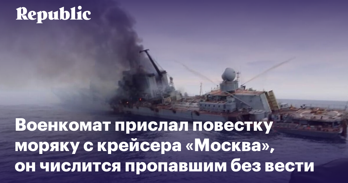 В Санкт-Петербурге военкомат Фрунзенского района в конце октября прислал повестку моряку с крейсера «Москва». Семья срочника ничего не знает о его судьбе с начала апреля — он числится пропавшими без вести. Житель Петербурга служил на крейсере корабельным поваром. Об этом сообщает «Фонтанка».