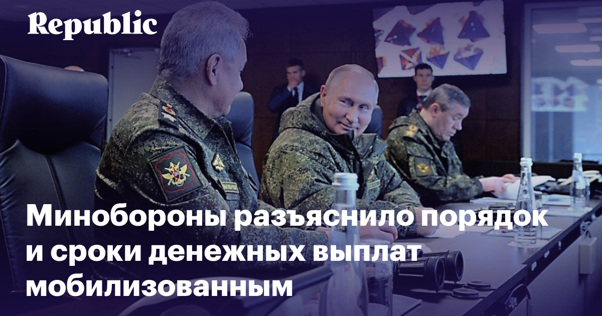 Представитель финансового блока Минобороны России Сергей Микищенко разъяснил порядок денежных выплат мобилизованным. По его словам, обещанные суммы, минимальная из которых 195 тысяч рублей, будут начисляться с 10-го по 20-е число за предыдущий месяц службы. В этом месяце, утверждает он, начислят деньги досрочно — 8 ноября. Ранее резервисты из многих регионов России жаловались, что получают после призыва копейки.