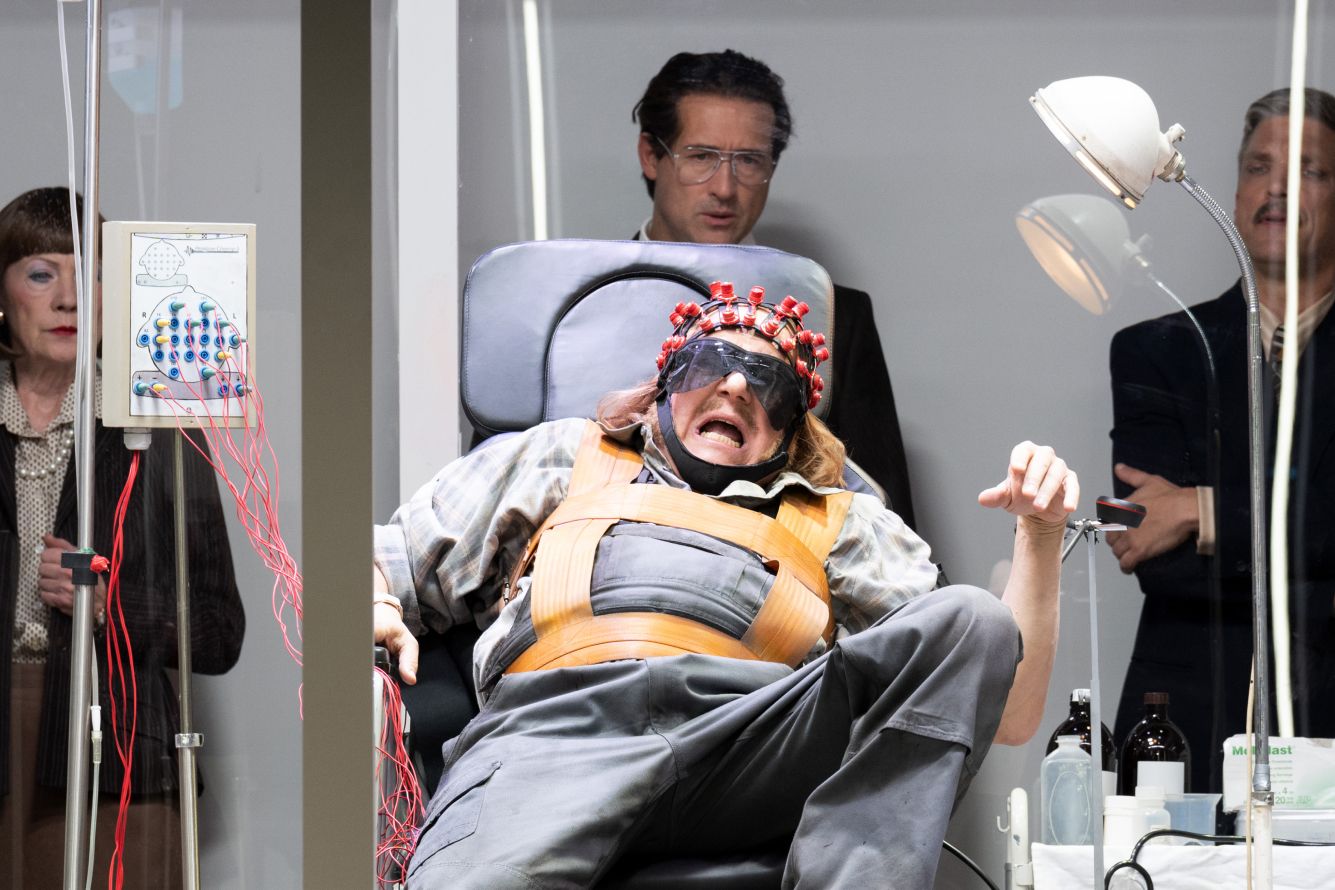 Открывающая цикл сцена Альбериха (Йоханнес Мартин Кренцле, при появлениях меняющийся до неузнаваемости — от честного работяги в комбинезоне до инфернального дряхлого старика в подгузнике) с русалками Рейна решена как эксперимент, при котором подопытный видит галлюцинации и внезапно сходит с ума. Великан Фафнер, ставший драконом (фактурный бас Петер Розе), — спятивший в смирительной рубахе. Магический сон валькирии Брунгильды — лаборатория исследований сна, где ее и находит Зигфрид. Смерть Зигфрида (кульминация «Сумерек богов») достигает катарсического эффекта, и без того обеспеченного музыкой, медленно собирая множество персонажей у койки с пациентом, умершим во время очередного опыта. Непредвиденный летальный исход, несчастный случай.