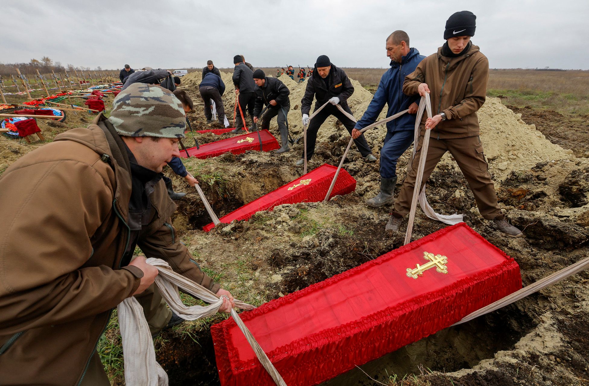 В Херсон зашли украинские спецподразделения, заявил президент Владимир Зеленский. Минобороны России сообщило, что на левый берег Днепра в Херсонской области было выведено свыше 30 тысяч военнослужащих, а также около пяти тысяч единиц вооружения и военной техники. Журналистам «Русской службы Би-би-си» и «Медиазоны» удалось подтвердить по открытым данным имена более 8700 российских военных, погибших с начала войны. После ухода российских войск из Херсона временной столицей аннексированной части Херсонской области стал Геническ. Британский уличный художник Бэнкси нарисовал граффити на разрушенном доме в Бородянке Киевской области. «Медуза» публикует главные фотографии двести шестьдесят первого дня войны.